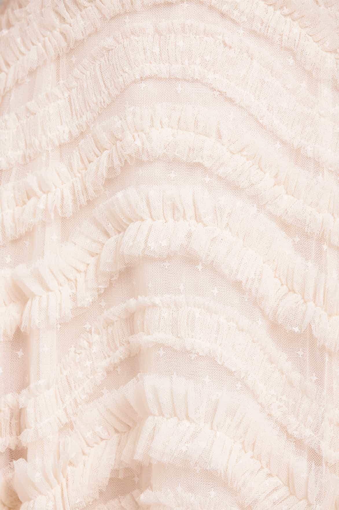 - Kisses tulle decorated with tulle ruffles.
