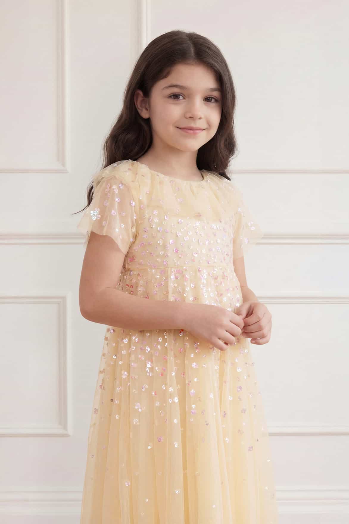 NEW SEASON. The Candy Dot Kids Dress in Lemon Sorbet/Multi. Designed with comfort and movement in mind, this kids dress features a relaxed shape and a full skirt perfect for twirling. Inspired by joyful garden blooms, it’s playful yet polished.