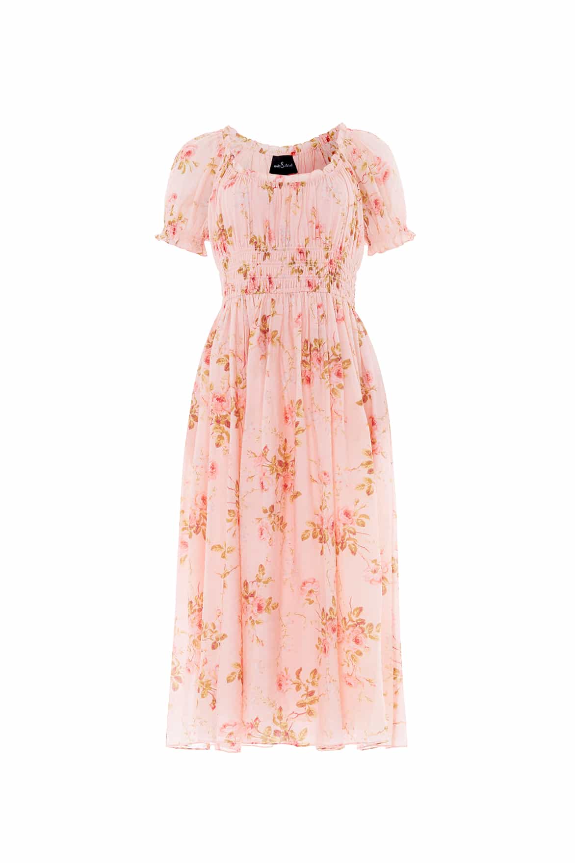 NEW SEASON | NEEDLE & THREAD EXCLUSIVE. The Summer's Rose Shirred Short Sleeve Ballerina Dress in Pale Pink. Adorned with the romantic Summer’s Rose floral print, this ballerina dress captures the softness of sunset hues. The gently fitted bodice is enhanced with a shirred back panel for flexibility, flowing into a twirl-worthy skirt.