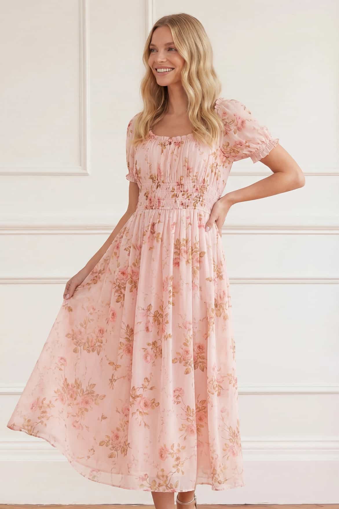 Summer's Rose Shirred Short Sleeve Ballerina Dress