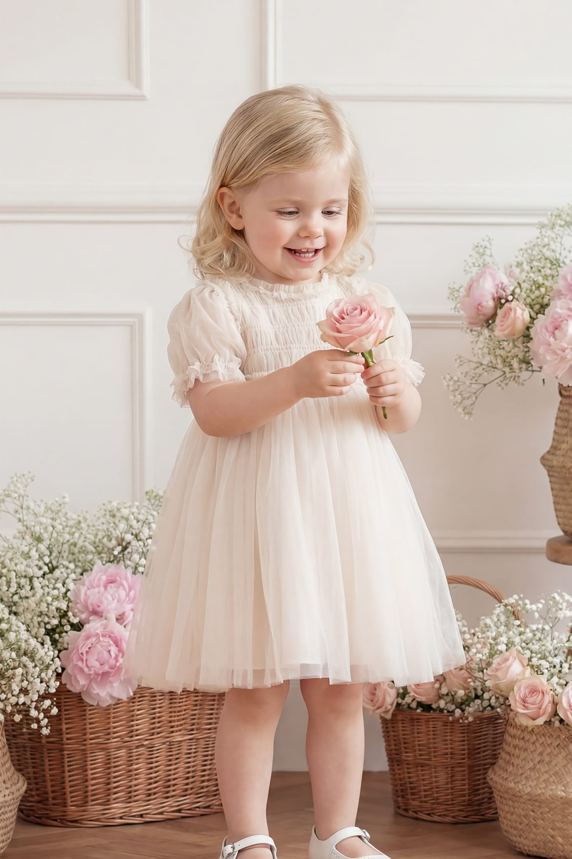 - Tulle decorated with smocking detail