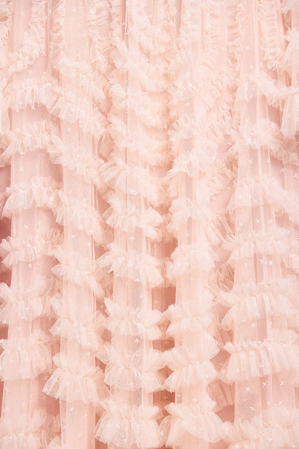 - Kisses tulle decorated with layers of kisses tulle ruffles.