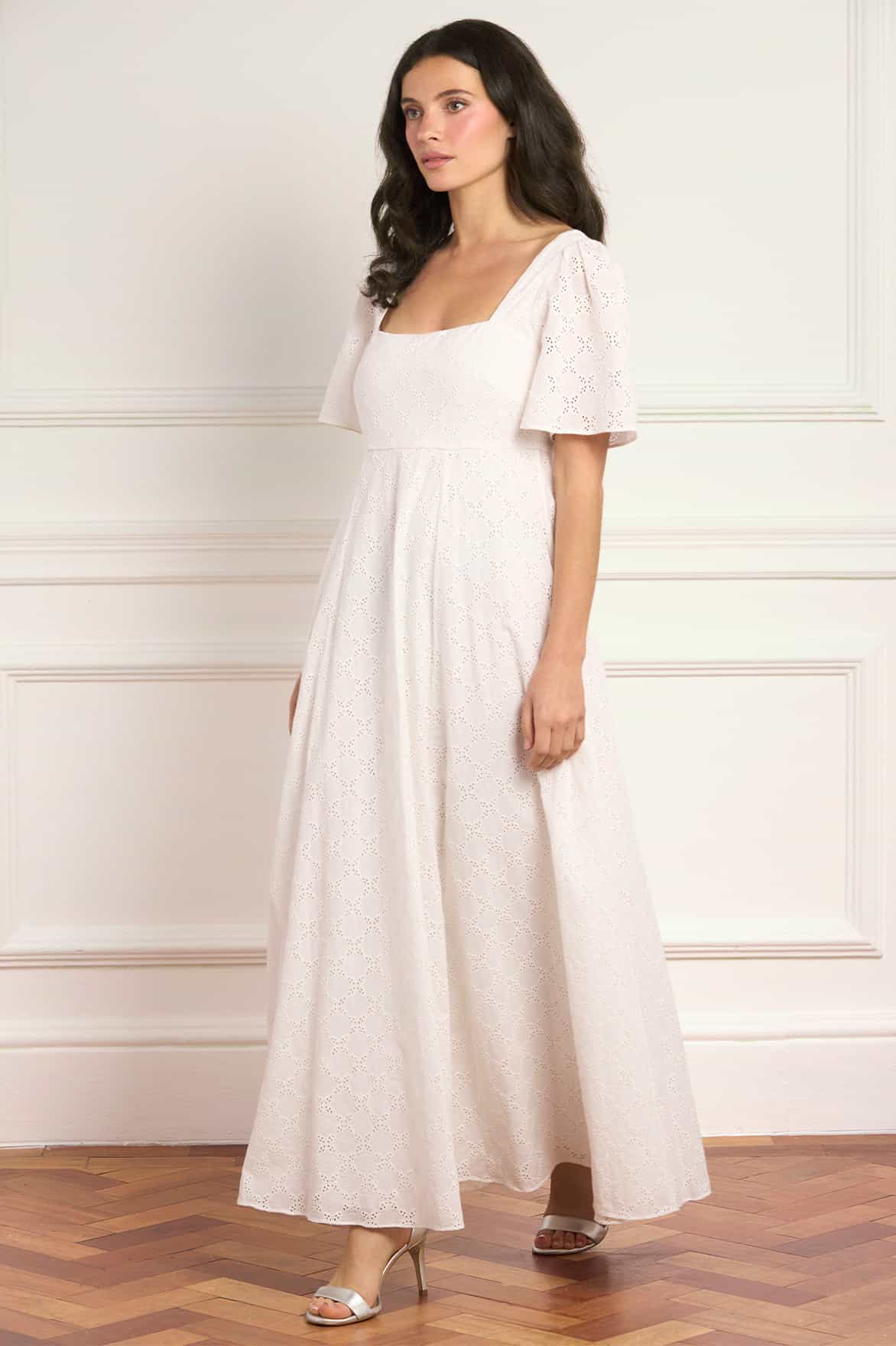 Marisol Cotton Broderie Short Sleeve Ankle Gown