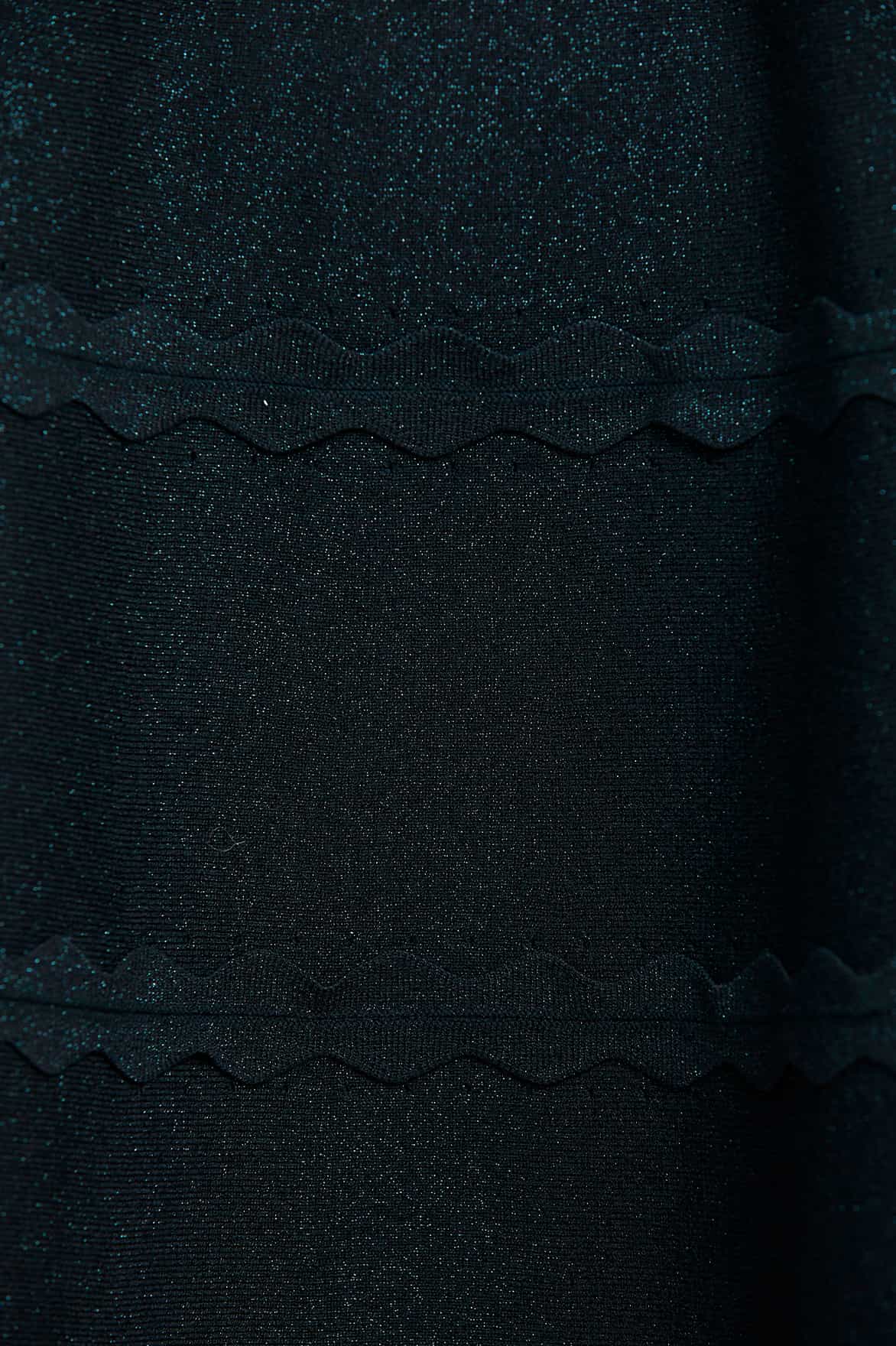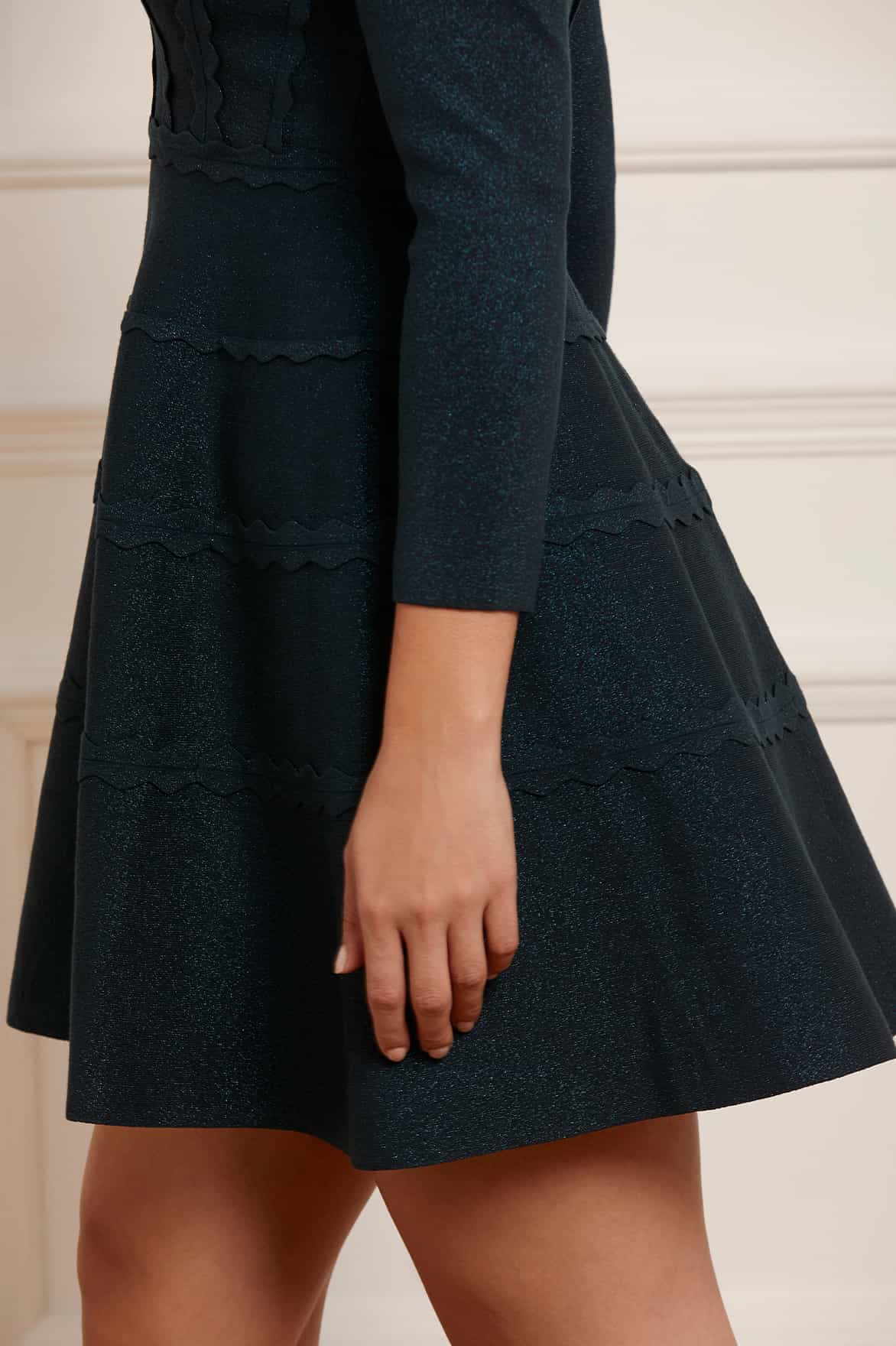 - Knitted stretch viscose dress with metallic fibre, decorated with scallop trims