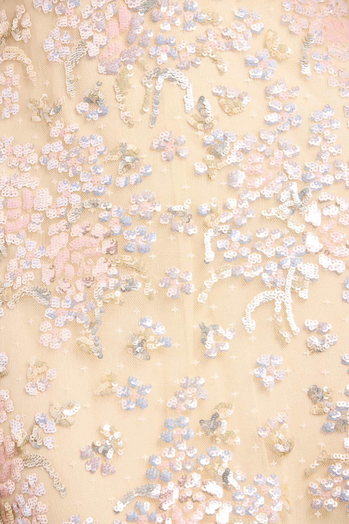 - Kisses tulle decorated with multi-coloured sequins.