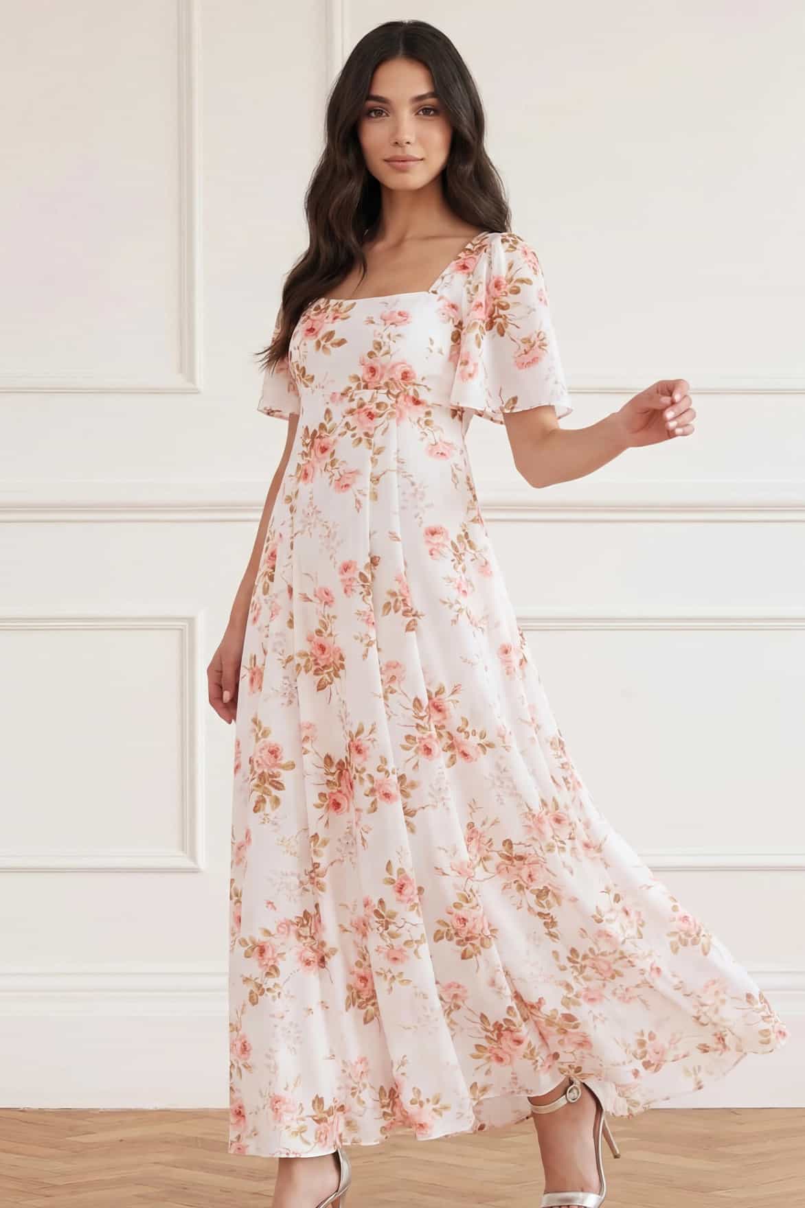 Summer's Rose Shirred Short Sleeve Ballerina Dress