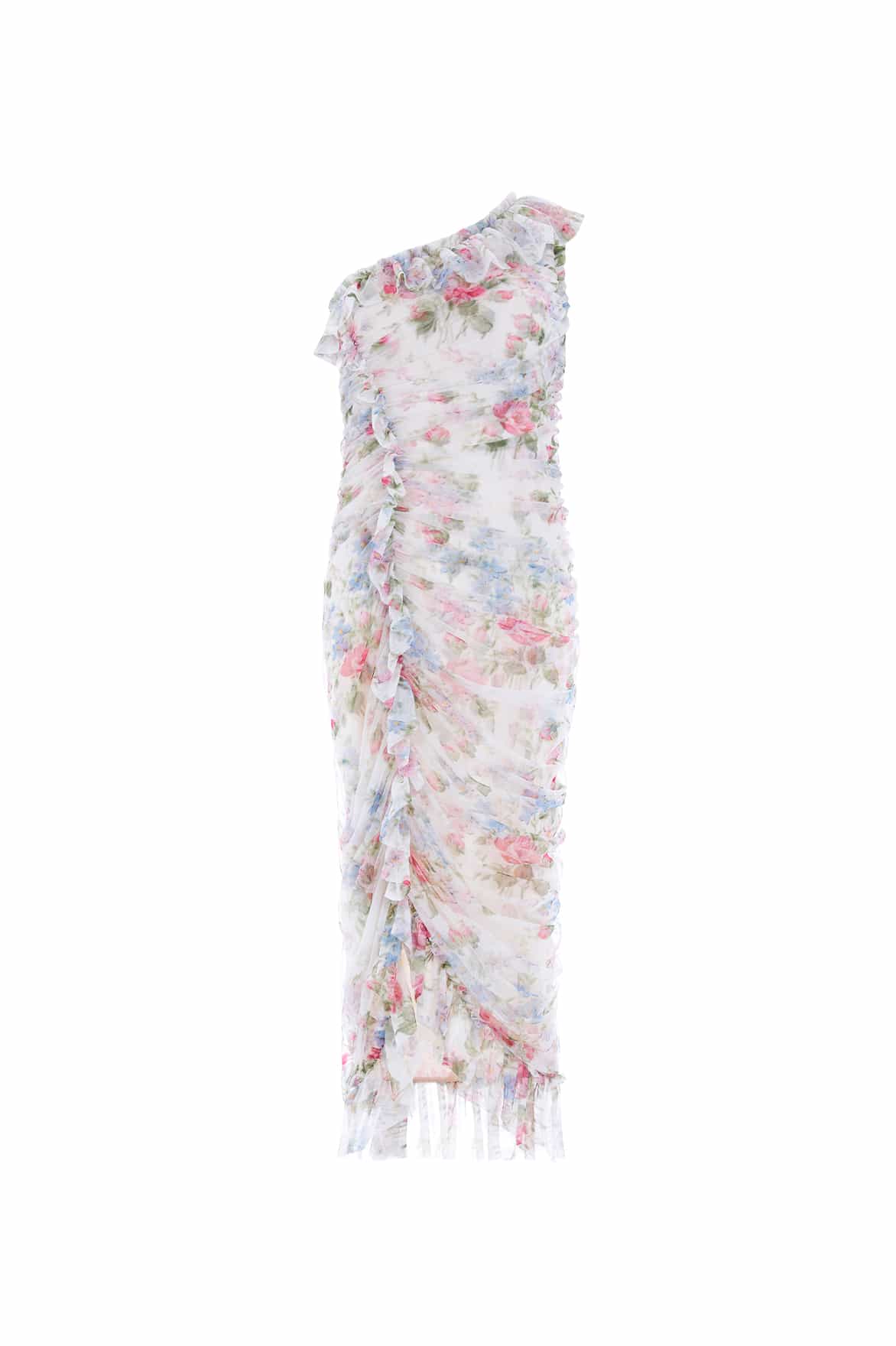 • Floral Fantasy Rouched One-Shoulder Ballerina Dress