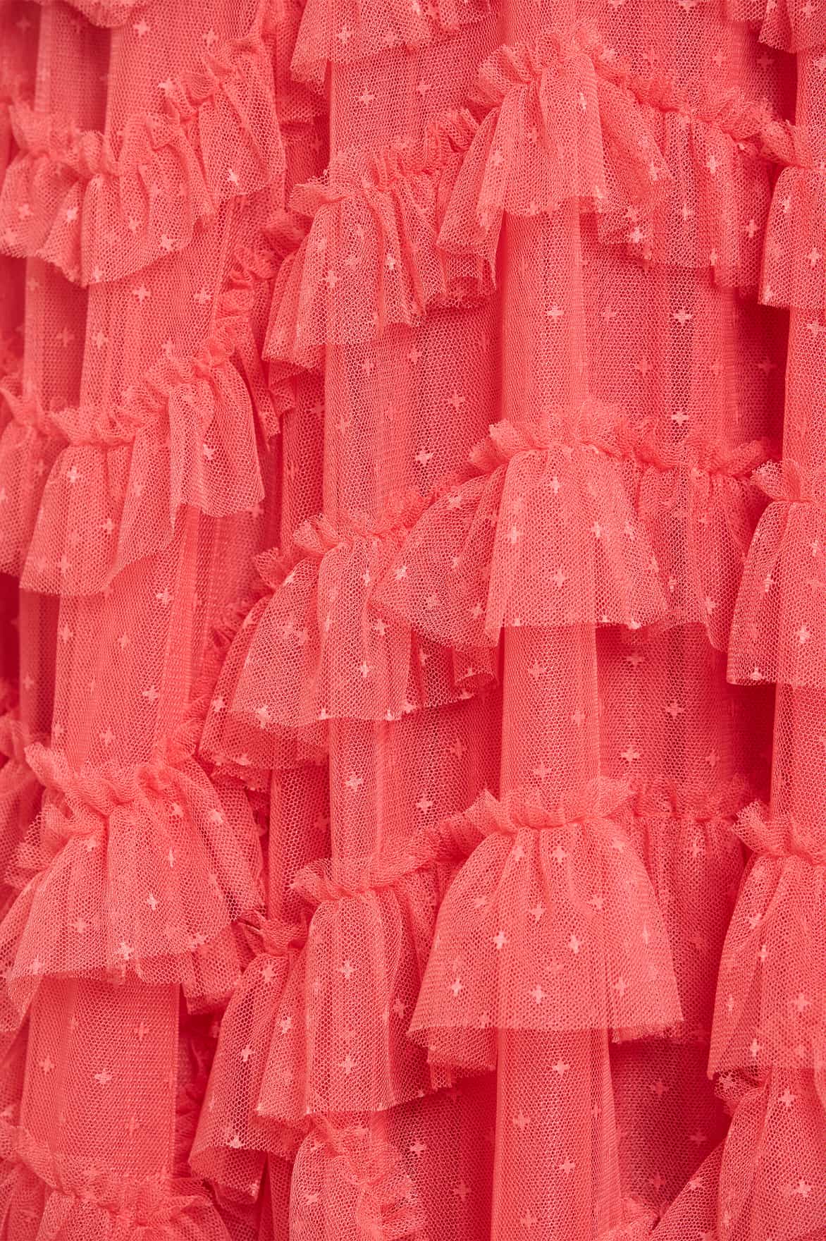- Kisses tulle decorated with layers of tulle ruffles