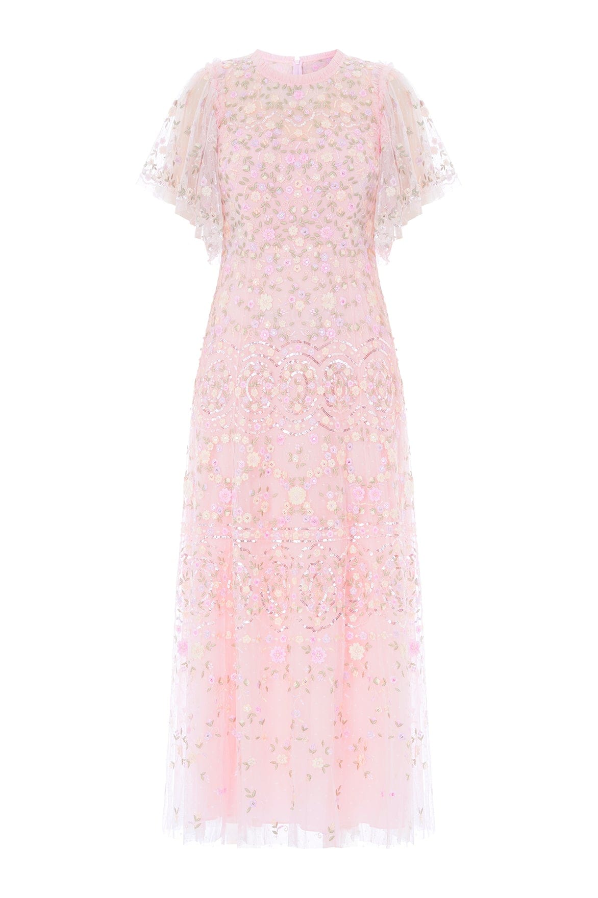 NEW SEASON. The Sweet Petal Short Sleeve Gown in Peony Pink/Multi. Inspired by scattered garden petals, this romantic gown features delicate floral detailing across a flowing silhouette. Finished with short sleeves and a softly moving skirt for effortless, feminine occasionwear.