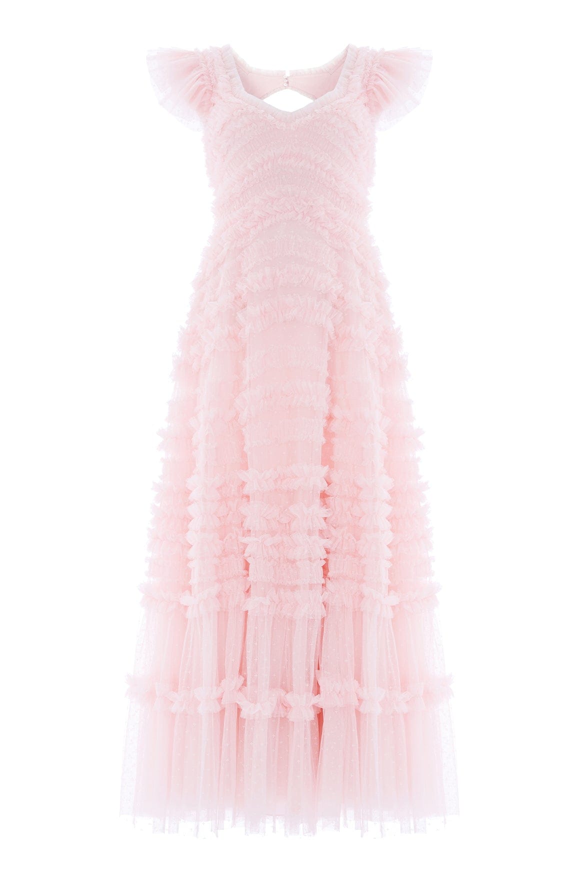 NEW SEASON | NEEDLE & THREAD EXCLUSIVE. The Amara Backless Gown in Peony Pink. Designed with sweeping ruffle detailing inspired by romantic English gardens, creating soft movement through the silhouette. The dramatic open back and flowing skirt offer an elegant, effortless occasionwear style.