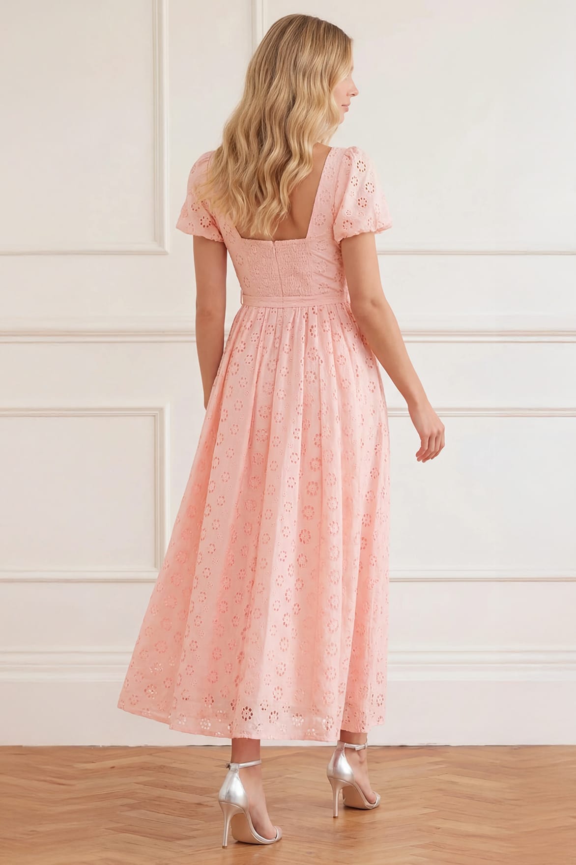 NEW SEASON | NEEDLE & THREAD EXCLUSIVE. The Romilly Cotton Broderie Ankle Gown in Pale Pink/White. Adorned with intricate daisy broderie detailing, this romantic gown evokes the charm of late summer florals. The softly sculpted bodice falls into an ankle-length skirt with effortless movement.