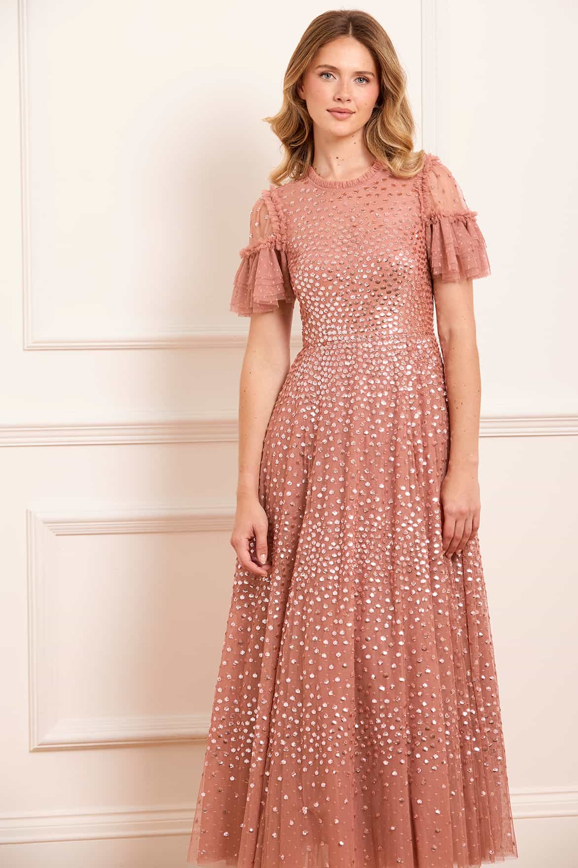 Dappled Sequin Long Sleeve Ankle Gown