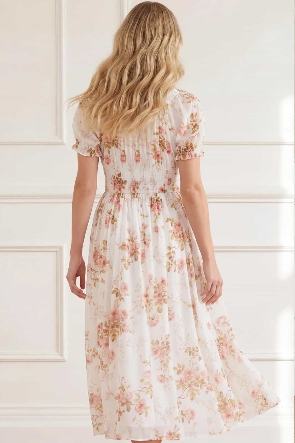 • Summer's Rose Shirred Short Sleeve Ballerina Dress