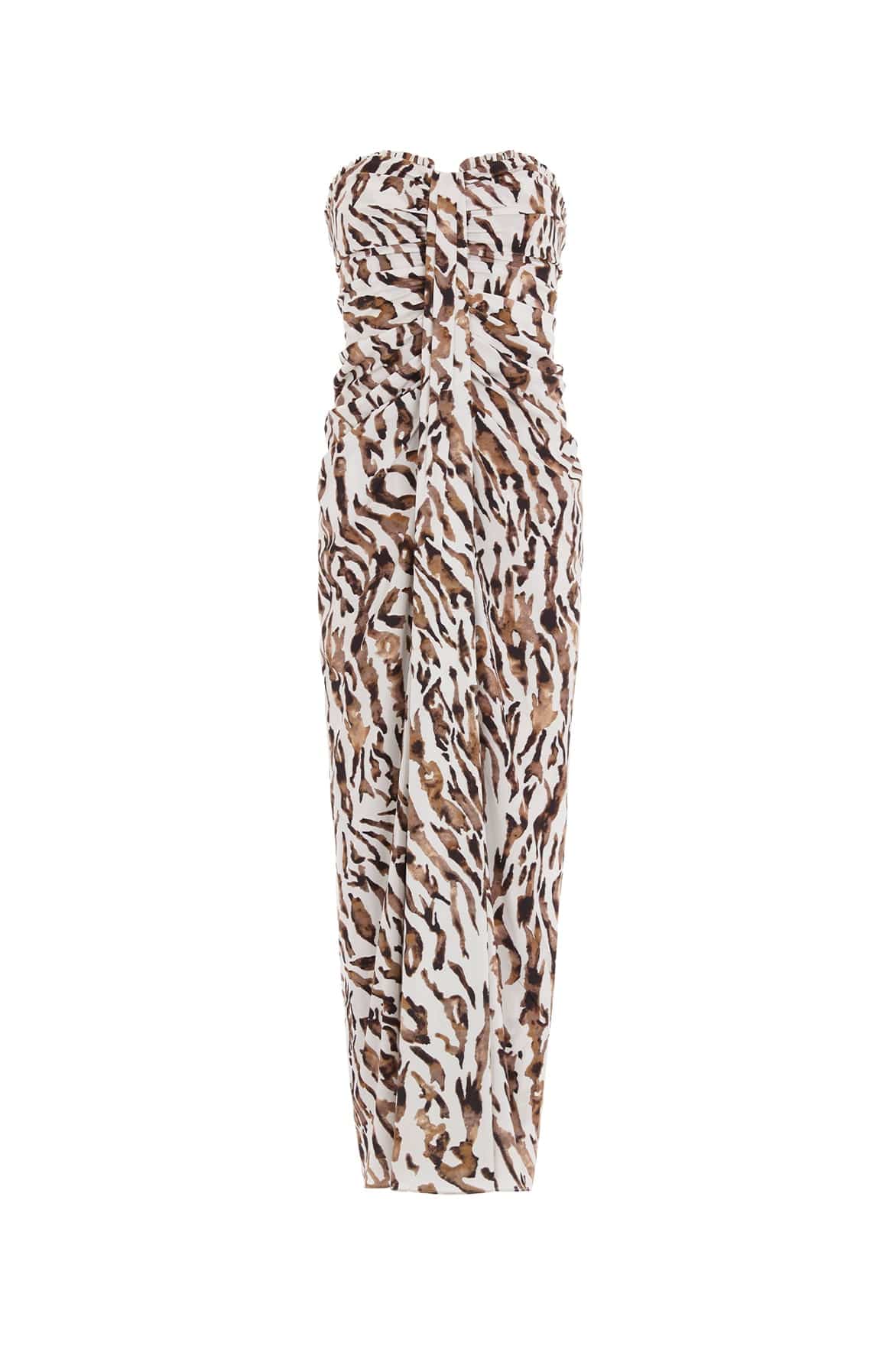 Zebra Crepe Strapless Ankle Gown