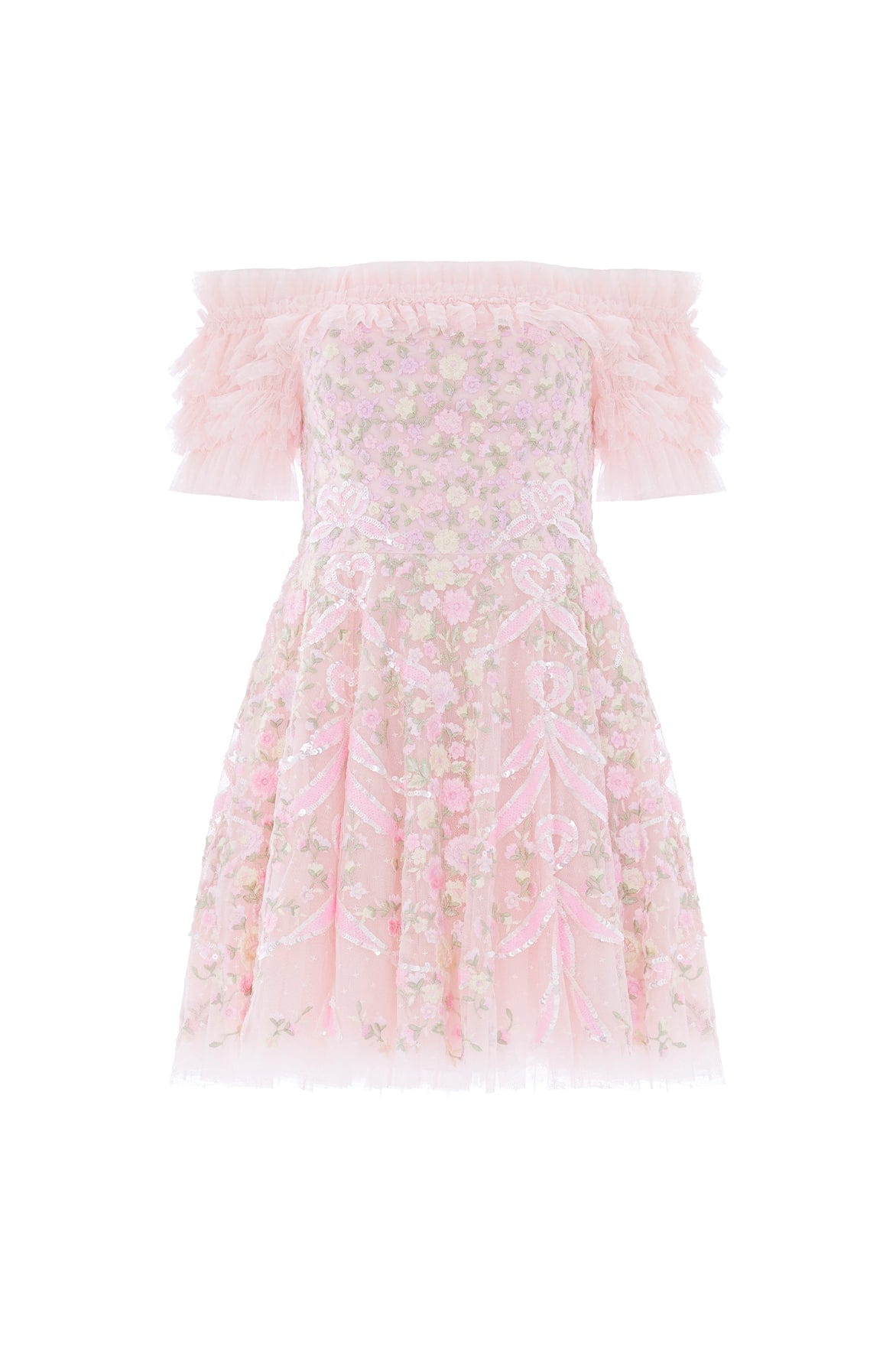 - Kisses tulle decorated with floral embroidery and contrast sequins