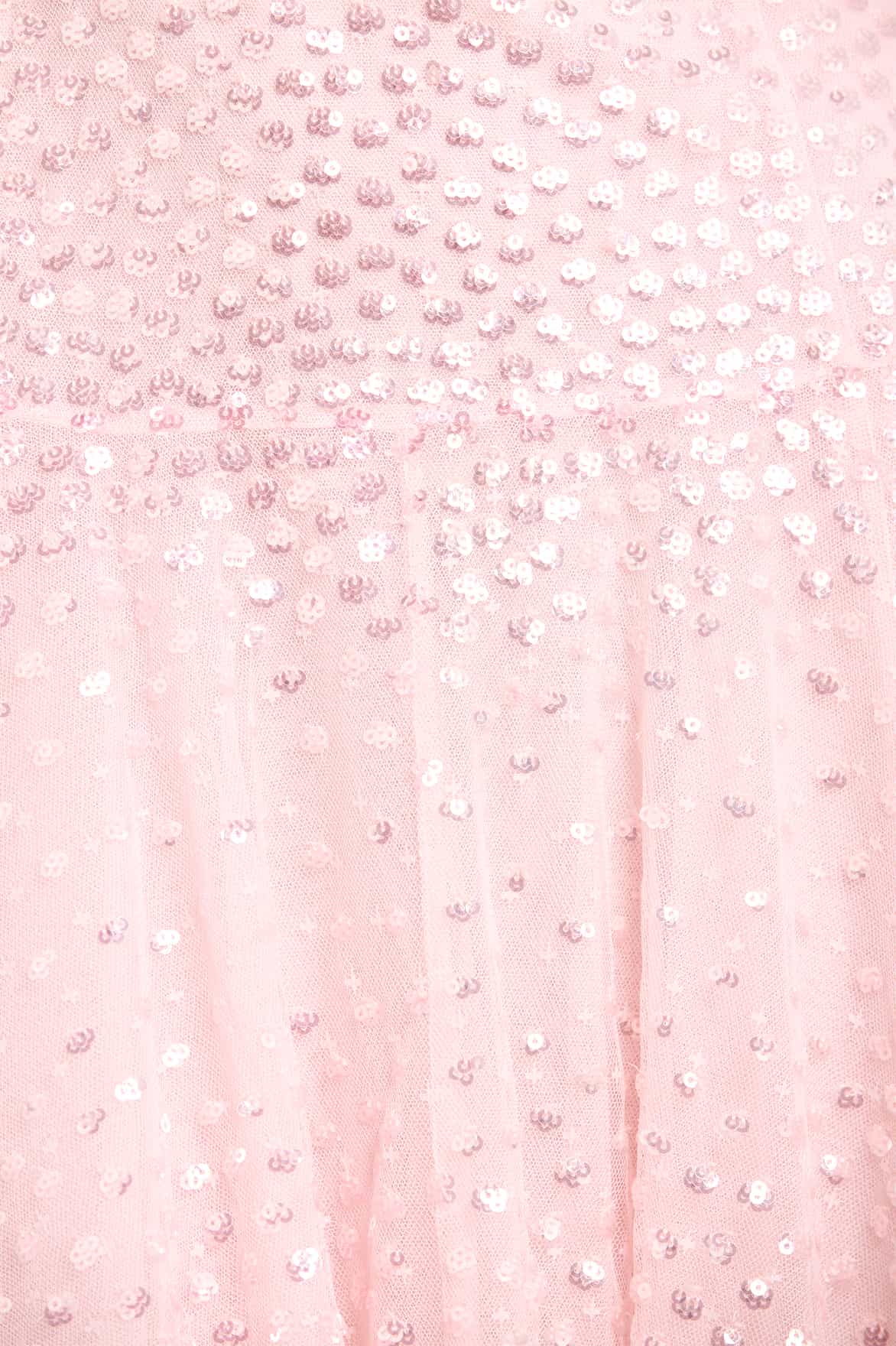 NEW SEASON. The Sunrise Sequin Cape Sleeve Ankle Gown in Peony Pink. Embellished with shimmering dot motifs arranged in softly fading linear bands, this gown captures a subtle sunrise-inspired glow. Designed with cape sleeves and an elegant ankle-length silhouette for refined eveningwear.