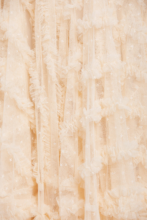 NEEDLE & THREAD EXCLUSIVE. Meet the Florence Ruffle Ankle Skirt in Champagne. This beautiful skirt is crafted with layers of kisses tulle, creating a voluminous romantic look. This ankle-length skirt is designed elegantly with a satin waistband and gathered neatly with tulle trims. Pair with your favourite knit and make an entrance this season.
