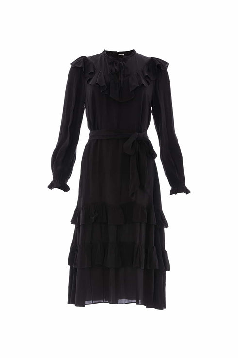 NEW SEASON | NEEDLE & THREAD EXCLUSIVE. The Joelle Crepe Midaxi Dress in Graphite. A clean and structured piece designed in a soft crepe with a defined waist, midaxi hemline and slight volume through the sleeves. This dress balances minimalism with polish.