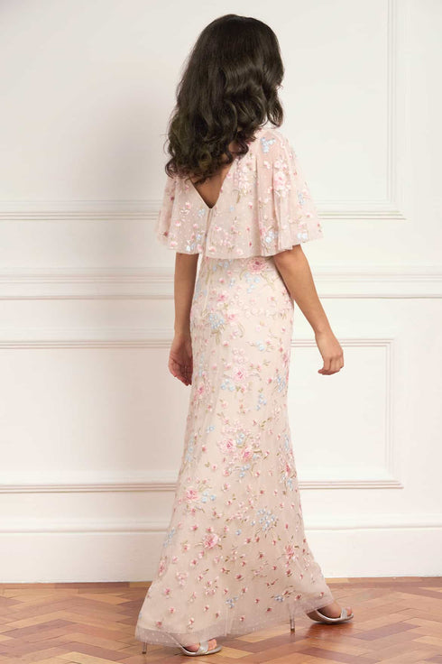 Ethereal Blooms Cape Sleeve Ankle Gown