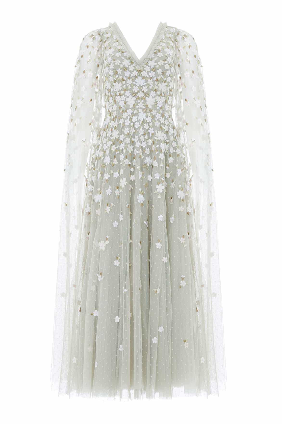 Ethereal Blooms Cape Sleeve Ankle Gown