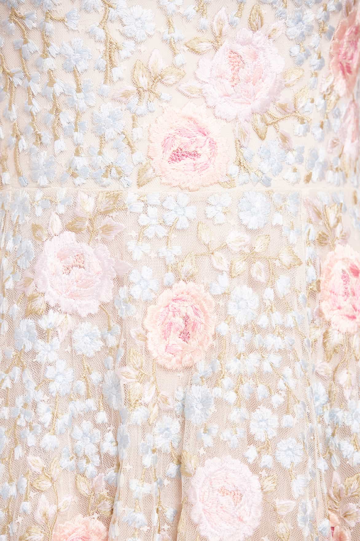 - Kisses tulle decorated with multi coloured embroidery