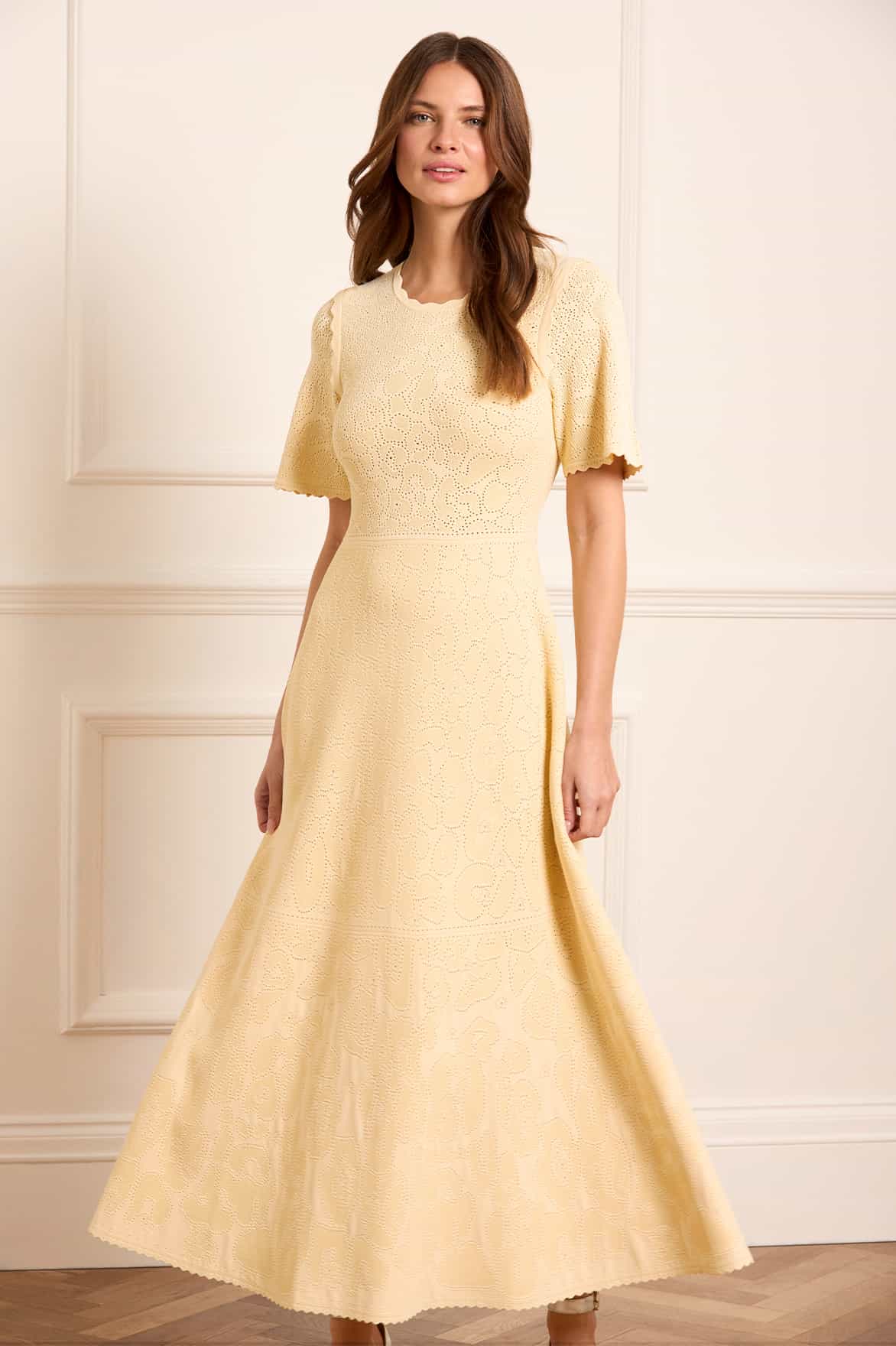 - Knitted stretch viscose dress with decorated floral pointelle detail