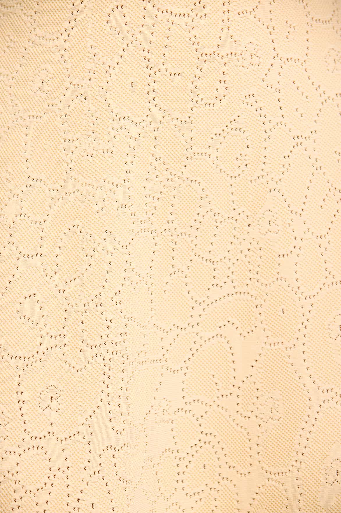 The Floral Pointelle Knit Gown in Buttermilk is crafted from a recycled viscose blend with stretch yarn for a beautifully flattering texture. Inspired by vintage lace, its stitch pointelle details showcase delicate floral motifs, adding a touch of intricate charm. The fitted stretch bodice features a feminine V-neckline and scalloped trim, enhancing the gown's romantic appeal.