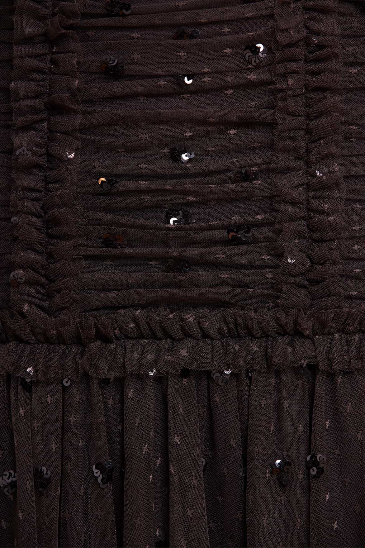 - Kisses tulle decorated with sequins and tulle ruffles