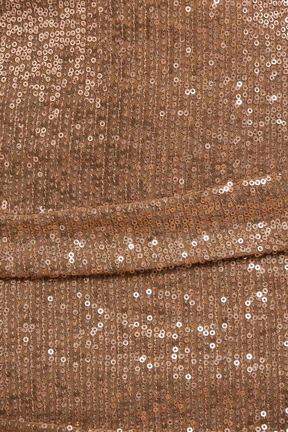 The Camille Long Sleeve Gown in Fawn. This gown exudes vintage Hollywood glamour. Featuring a scoop neck with sequin frill and a slim silhouette, it gracefully drapes across the body. Crafted from a stretch mesh base, its delicate sequins create a shimmering effect, adding timeless elegance to this romantic gown – a true treasure for years to come.