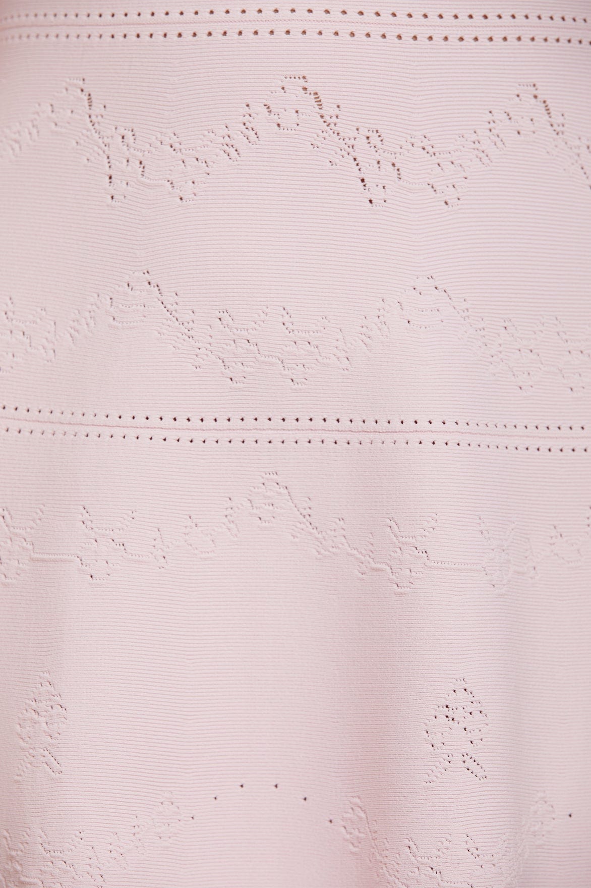 The Pretty Pointelle Knit Ankle Gown in Pink. A brand new style for Needle & Thread. This knitted gown is inspired by vintage ditsy florals and lace. Beautifully designed with all-over pretty pointelle stitch, delicate florals and scallop details. This gown has a fitted stretch bodice with a soft, round neckline, fluted cuffs and signature Needle & Thread detailing. A truly flattering piece.