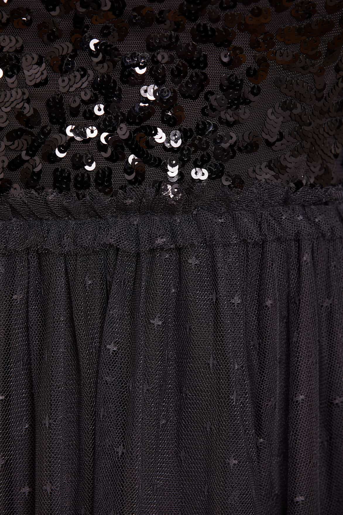 - Kisses tulle with layers of tulle ruffles and tonal sequins
