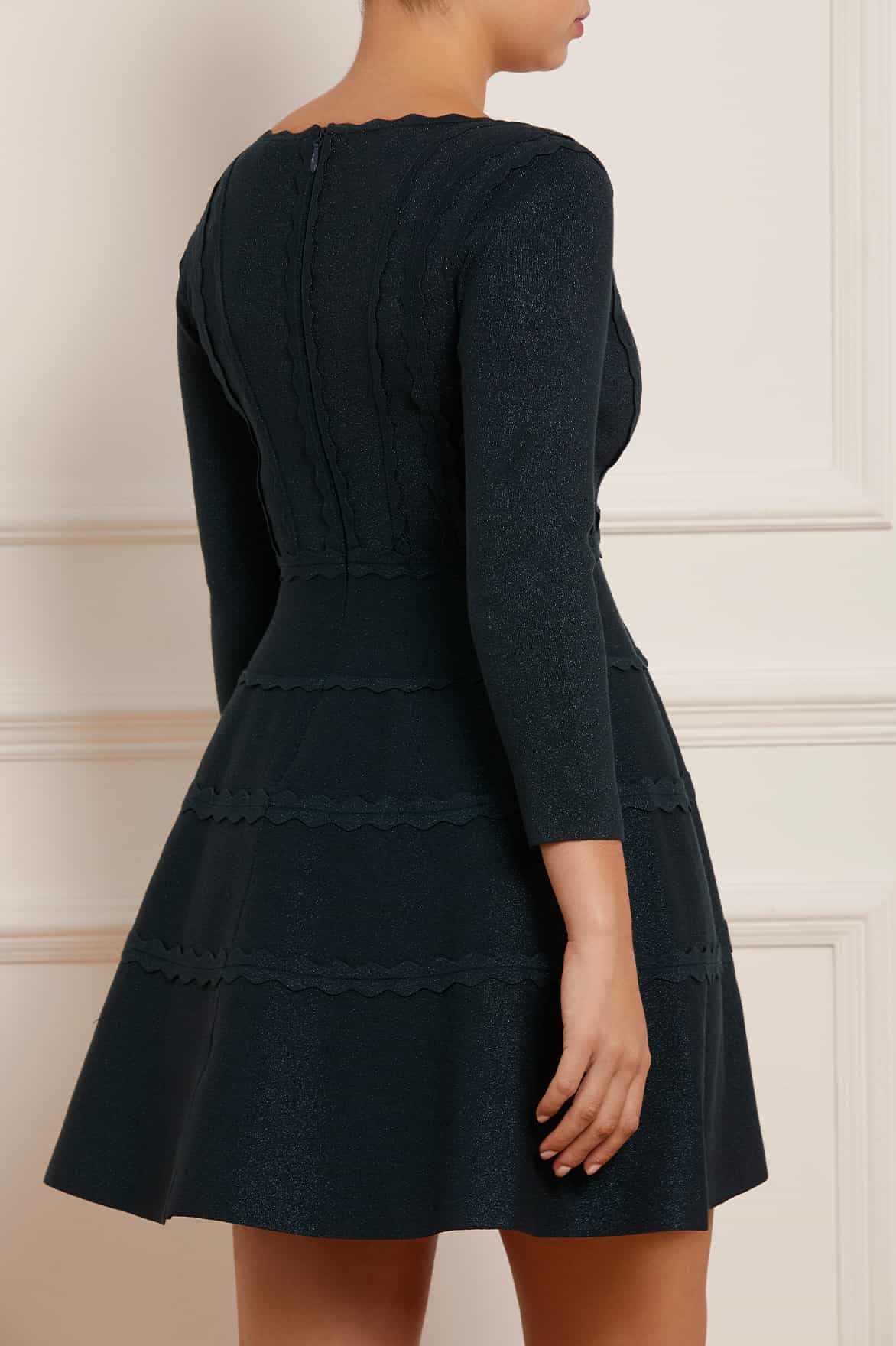 - Knitted stretch viscose dress with metallic fibre, decorated with scallop trims