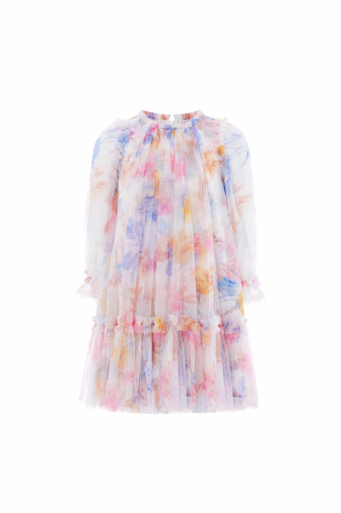 - Floral printed tulle with frill hem detail.
