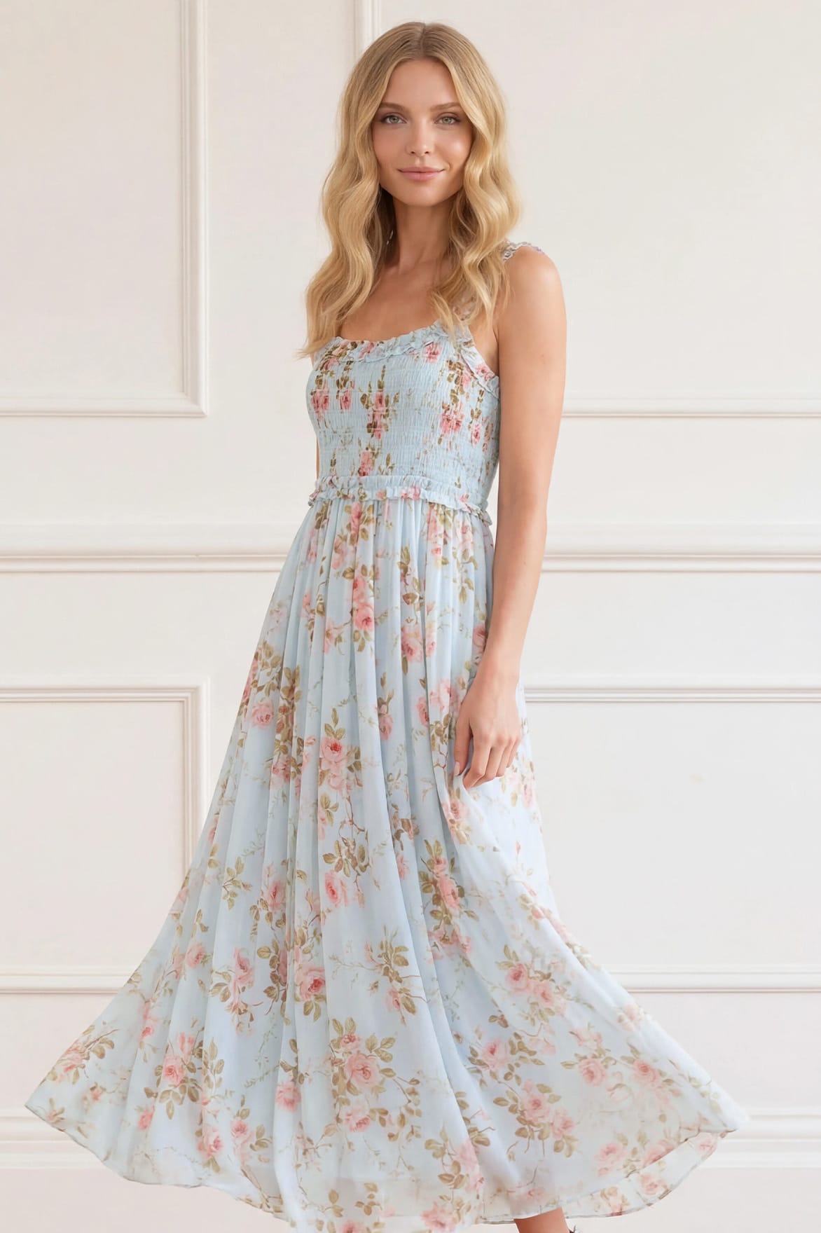 Magnolia Ditsy Chiffon Smocked Cami Ankle Gown