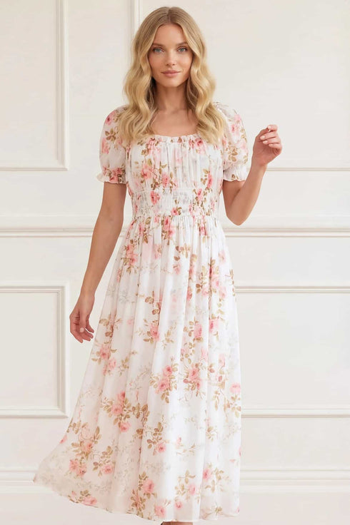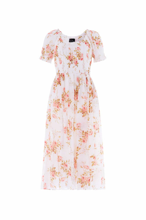 Summer's Rose Shirred Short Sleeve Ballerina Dress