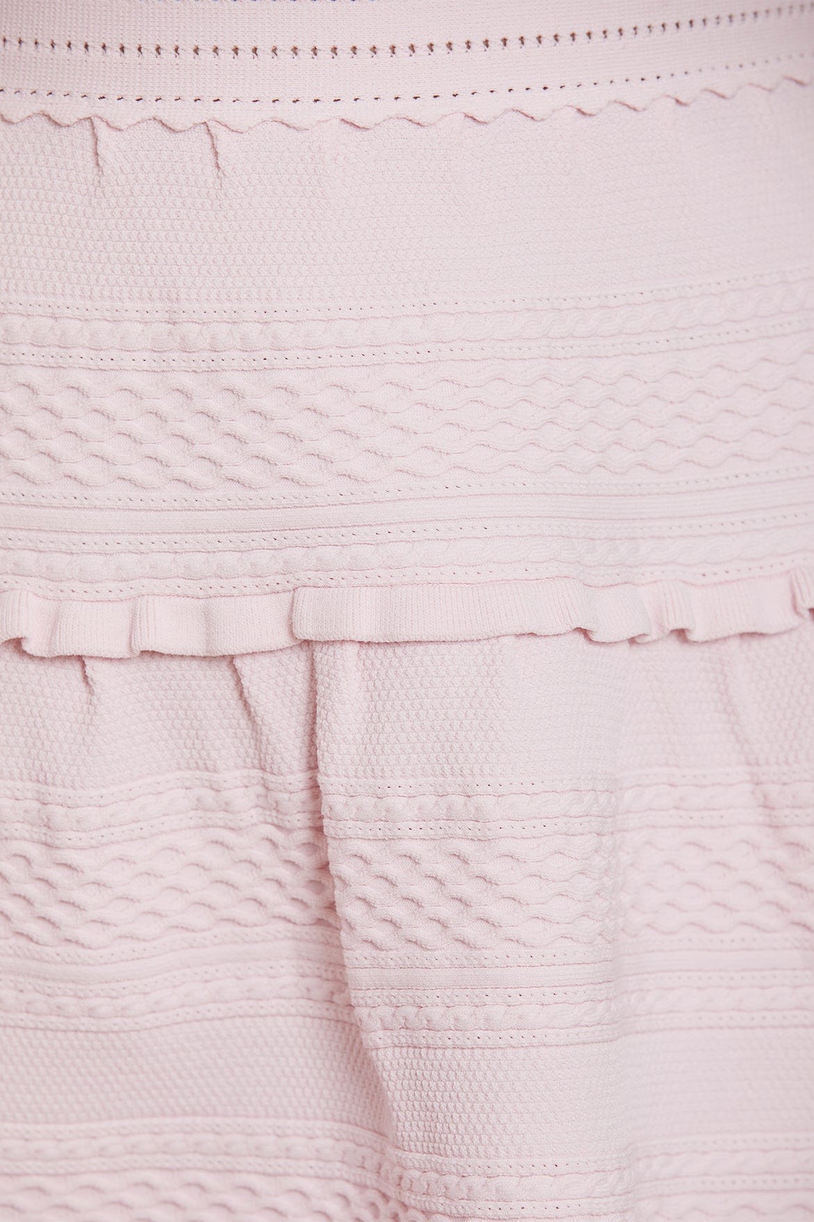 The Textured Knit Sleeveless Mini Dress in Pink. This knitted dress is intricately designed with scallop and pointelle trims for signature Needle & Thread detailing. Beautifully developed from a stretch, yarn fabric that makes the dress easy to wear and comfortable. This sleeveless dress is adorned with perfectly placed knitted ruffles, lace cable details and a voluminous skirt. Make this dress your new wardrobe staple.