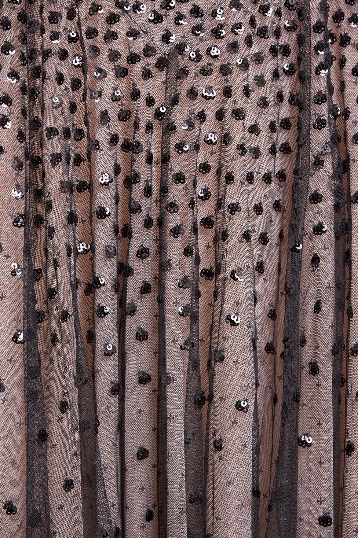 The Sequin Cascade Round Neck Gown in Graphite/Opal. Designed with contrast colour and light-catching sequin details. Soft signature kisses 'x' tulle is decorated with tonal embroidery and layered frills, with sequins artfully dispersed through the body and hem. A striking choice for truly unforgettable moments.