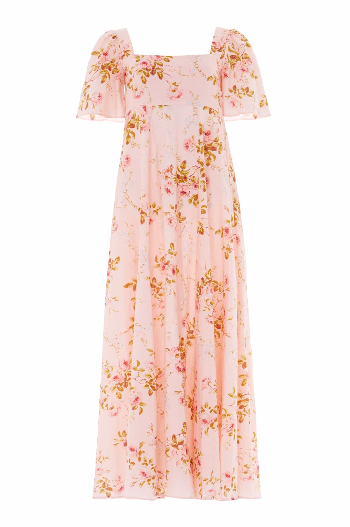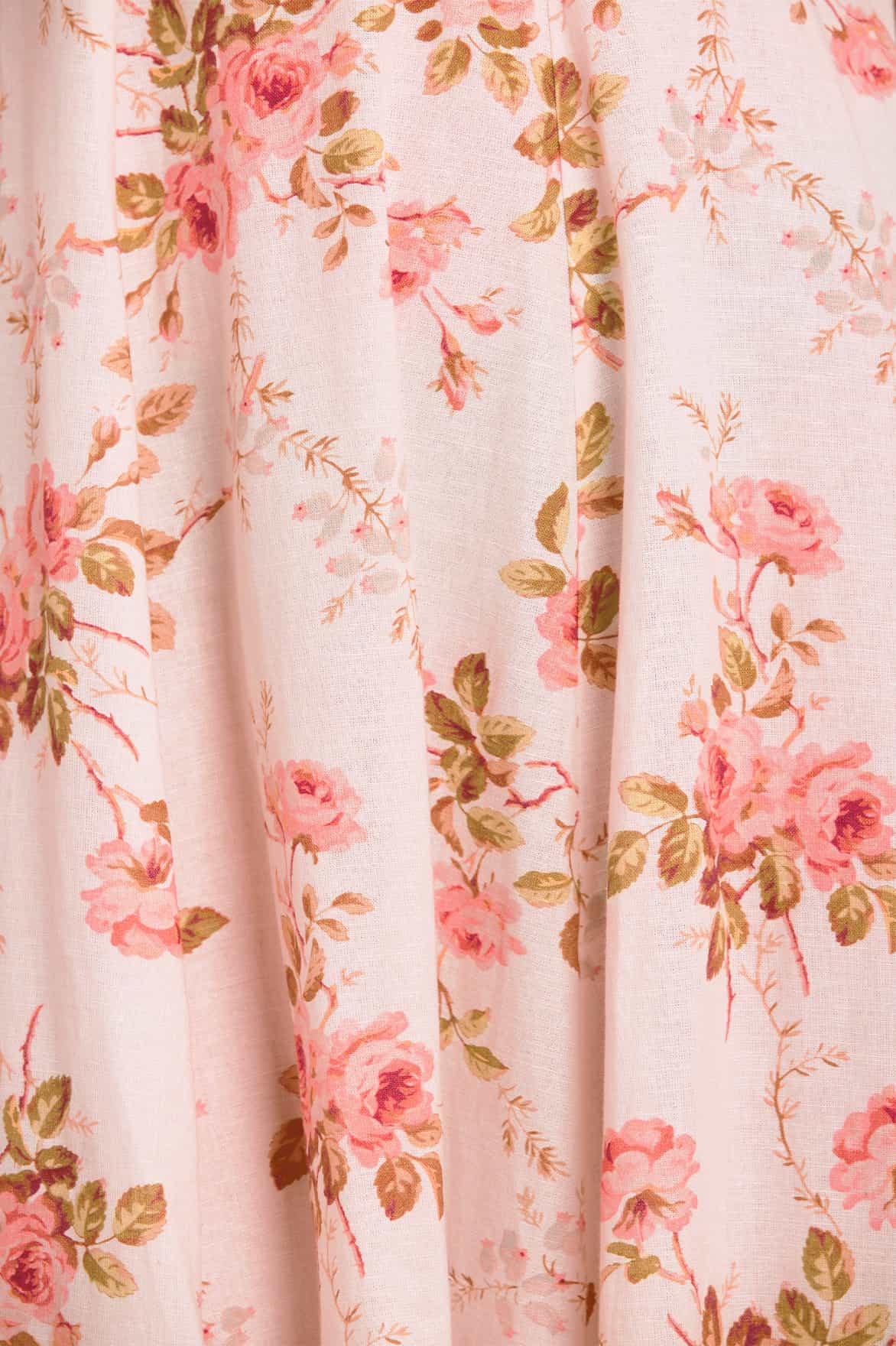NEW SEASON | NEEDLE & THREAD EXCLUSIVE. The Summer's Rose Linen Blend Short Sleeve Ankle Gown in Pale Pink. Inspired by the soft hues of sunset skies, this ankle gown showcases the Summer’s Rose print in a delicate linen blend. The short sleeves and gently structured bodice fall into a fluid skirt for graceful movement.