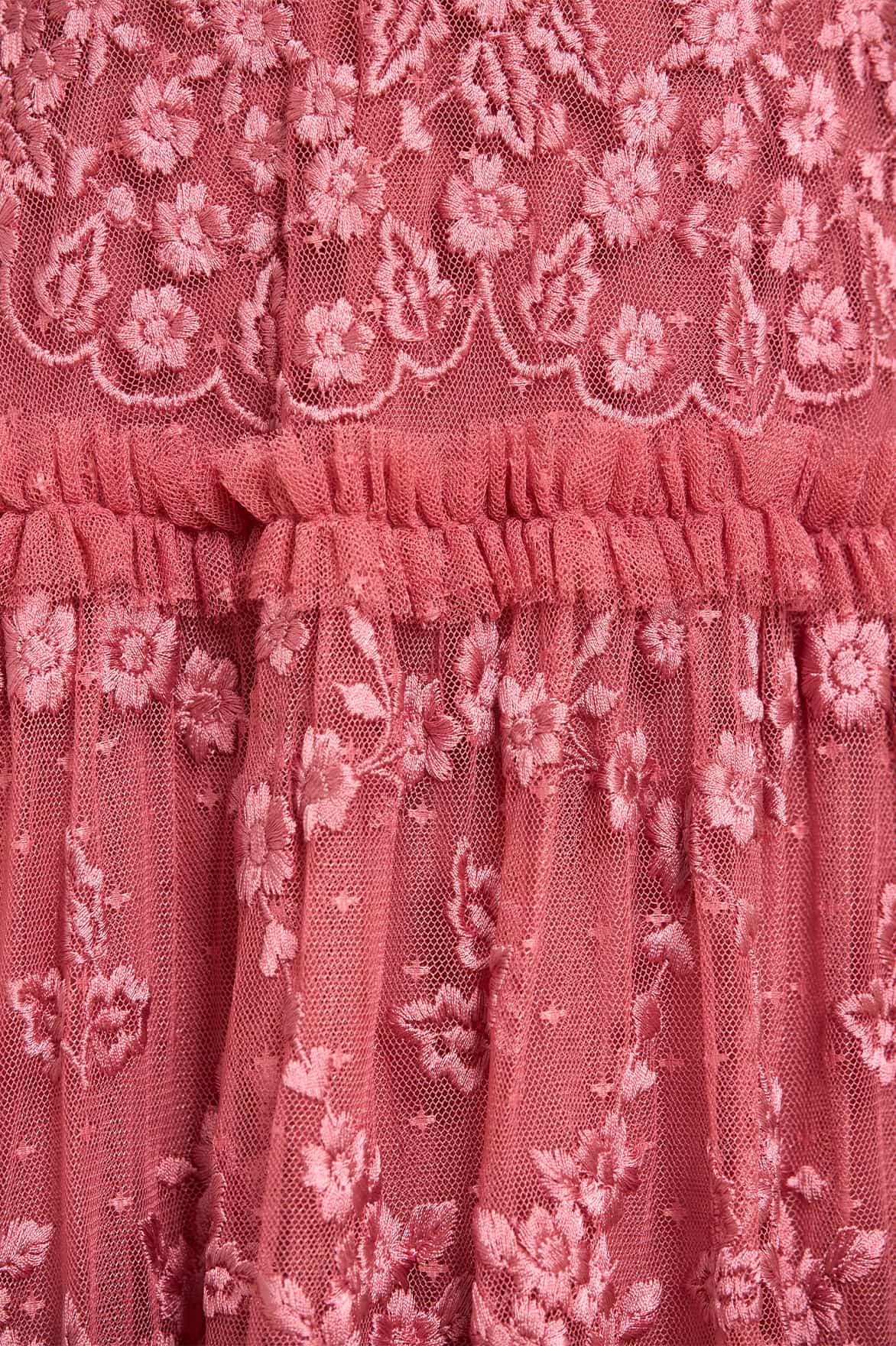 - Kisses tulle decorated with tonal floral embroidery