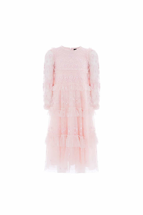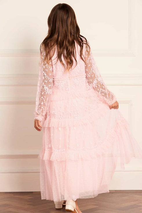NEW SEASON. The Blossom Lace Kids Gown in Seashell. A dreamy lace design with soft tulle layers. Featuring delicate floral lace and a gently flared skirt, this gown is perfect for twirling and little celebrations.