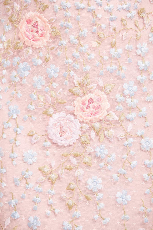- Kisses tulle decorated with multi coloured embroidery