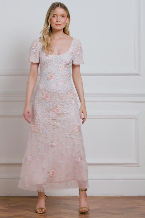 Cressida Floral Short Sleeve Ankle Gown