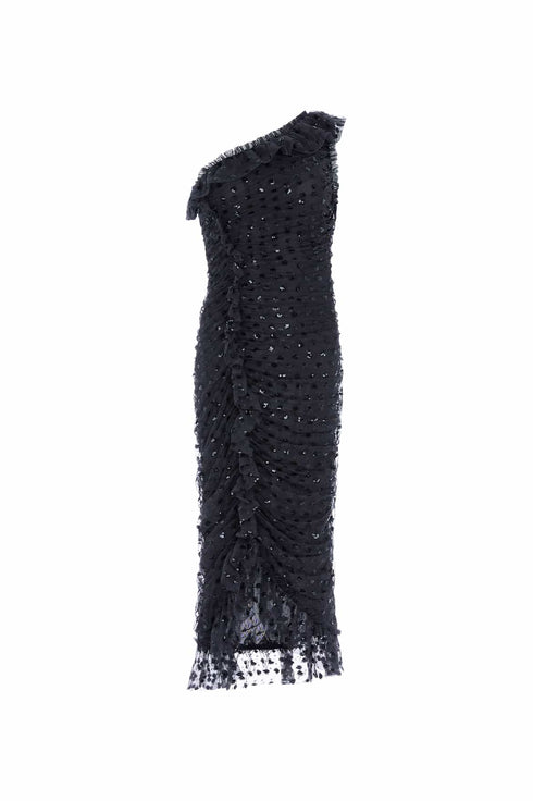 Dotty Rouched One-Shoulder Ballerina Dress
