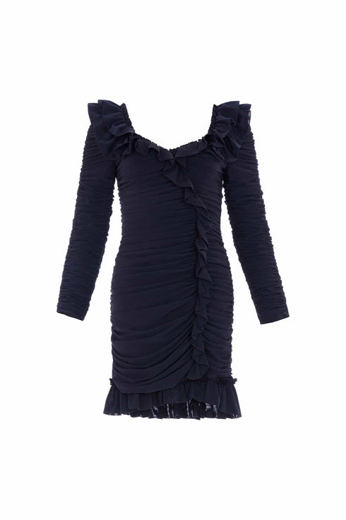 • Ebony Rouched Long Sleeve Micro Mini Dress