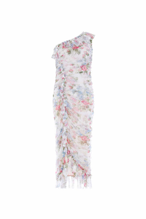 Floral Fantasy Rouched One-Shoulder Ballerina Dress