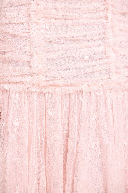 - Lace outer with tonal tulle underlayer