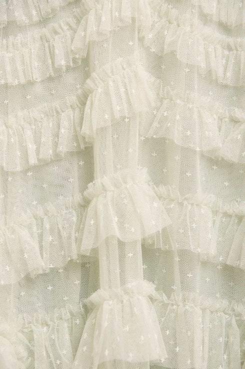 The Lola Backless Ballerina Dress in Mist, a beautiful new addition for the season. Adorned with signature Needle & Thread elements, this dress features soft tulle and delicately gathered frills, creating a frothy, engineered texture. The backless design adds a romantic, playful touch, while the ballerina-length skirt enhances its graceful silhouette. Perfect for weddings, birthdays, or any special occasion, this dress promises to be a showstopper.