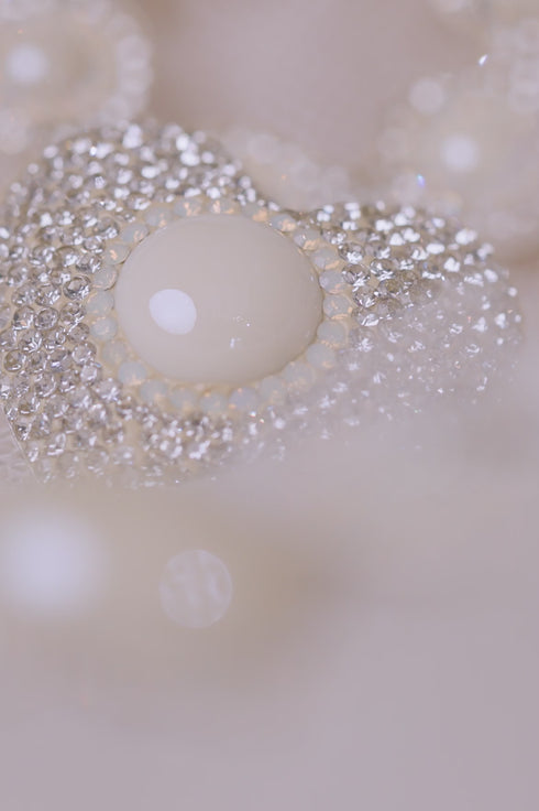 The Loveheart Crystal Stud Earrings in Silver Pearl. These stunning heart-shaped earrings feature an iridescent Majorca pearl framed by micro crystals for a contemporary classic look. Handmade from sterling silver, these earrings will give you the ultimate glisten for an effortless statement look. These are the most versatile earrings for your everyday, bridal moments or upcoming special occasions and beyond.