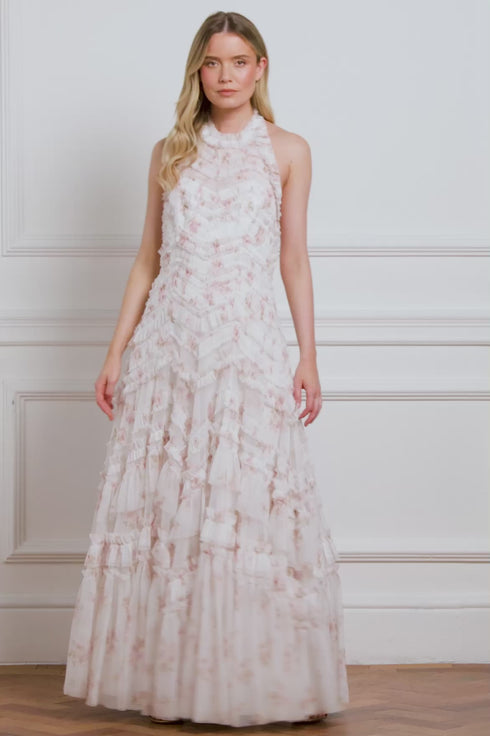 • Magnolia Ditsy Elia Halter-Neck Gown