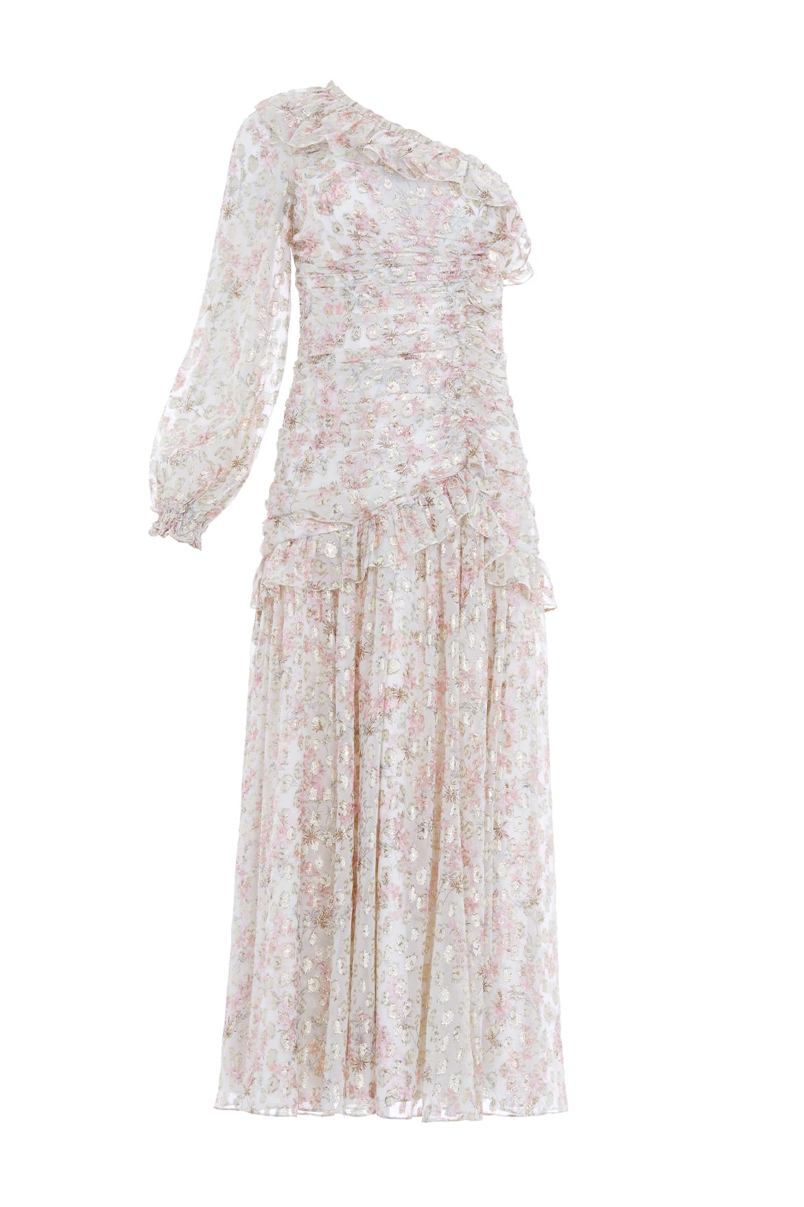 Ophelia Ditsy Lurex One-Shoulder Ankle Gown